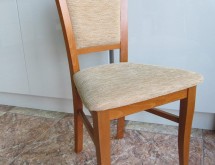 4 KLASYCZNE KRZESŁA Z DREWNA OLCHOWEGO Z MIĘKKĄ BEŻOWĄ TAPICERKĄ.